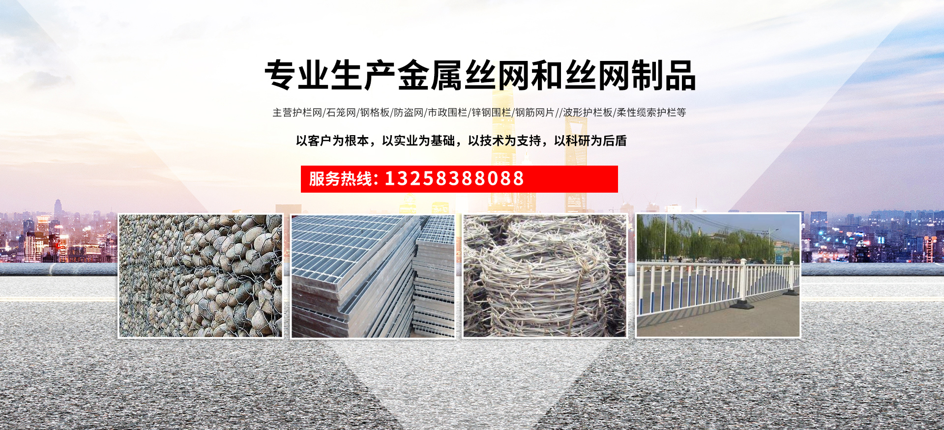 成都宏旭金屬絲網(wǎng)制造有限公司主營護(hù)欄網(wǎng)系列、石籠網(wǎng)系列、鋼格板、防盜網(wǎng)、市政圍欄、鋅鋼圍欄、鋼筋網(wǎng)片、聲屏障系列、波形護(hù)欄板、柔性纜索護(hù)欄、SNS邊坡防護(hù)網(wǎng)等其他絲網(wǎng)類產(chǎn)品。特殊規(guī)格可加工定做,也可根據(jù)客戶來圖來樣定做。自創(chuàng)業(yè)以來,公司一直堅持市場為導(dǎo)向,以客戶為根本,以實業(yè)為基礎(chǔ),以技術(shù)為支持,以科研為后盾,集科研、生產(chǎn)、經(jīng)營為一體,不斷研制開發(fā)新產(chǎn)品,開拓市場,走綜合發(fā)展之路。多年來,公司憑借過硬的質(zhì)量,良好的信譽、優(yōu)質(zhì)的服務(wù)、合理的價格,贏得了市場和商家的一致好評。